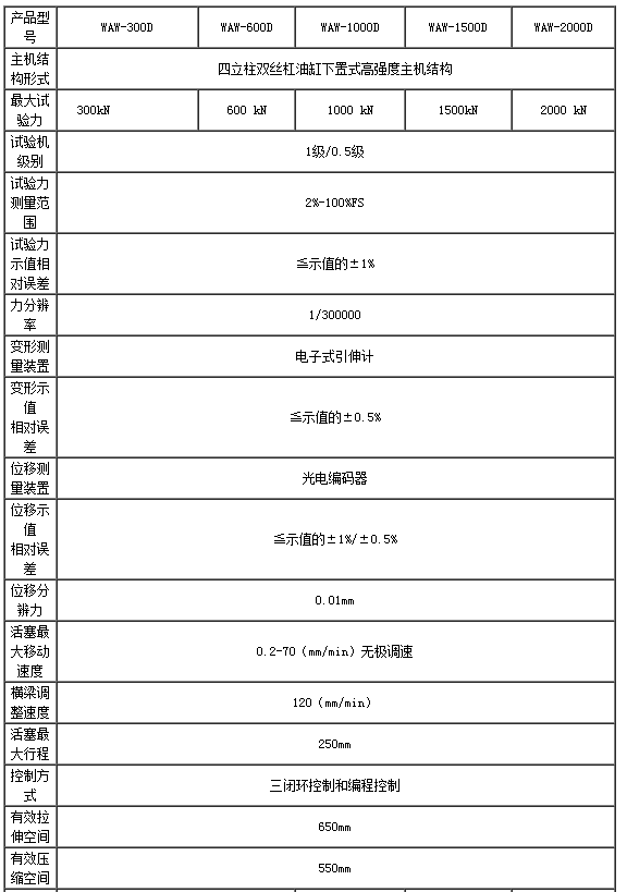 主要用途濟南試金WAW-D系列微機屏顯控制電液伺服萬能試驗機主要用于金屬材料的拉伸、壓縮、彎曲等力學性能試驗,增加簡單的附件后可對水泥、混凝土、磚、瓦、橡膠及其制品進行檢測。 本機由四立柱雙絲杠油缸下置式高強度主機及琴式油源控制柜組成,油泵采用意大利馬祖奇進口低噪音高性能齒輪泵。拉伸空間位于主
